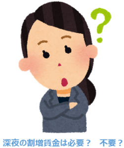 それでは、昼勤シフトと夜勤シフトがある勤務形態において、夜勤シフトのときに年休を請求した場合は、深夜の割増賃金を支払う必要があるのでしょうか?