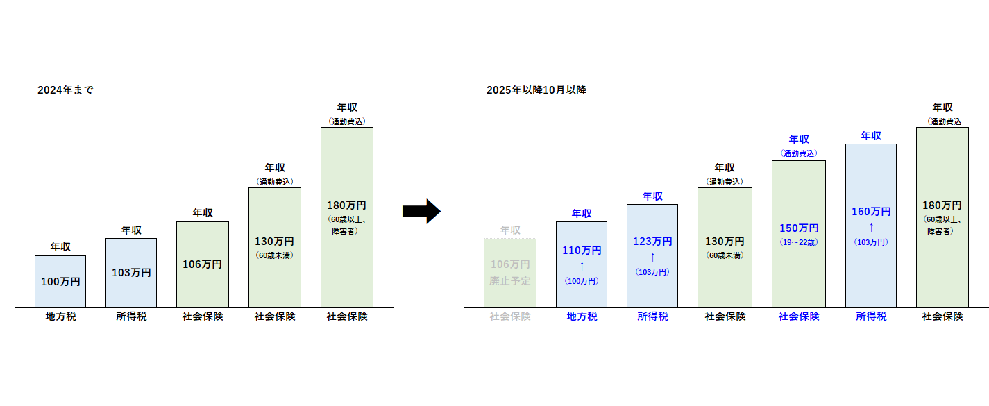以前のコラムでは社会保険の壁は変わらないと紹介しましたが、税制改正(勤労学生控除額の変更)を受けて一部改正されました。